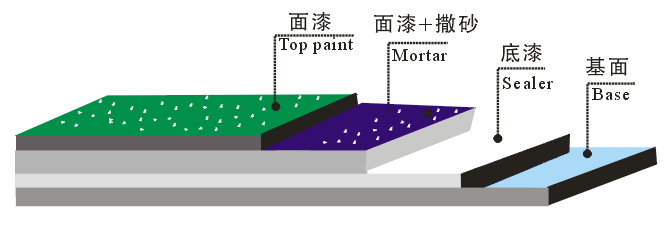 5、表面在滚涂两遍环氧色漆,使之均匀渗透至底层,与石英砂结合牢固。